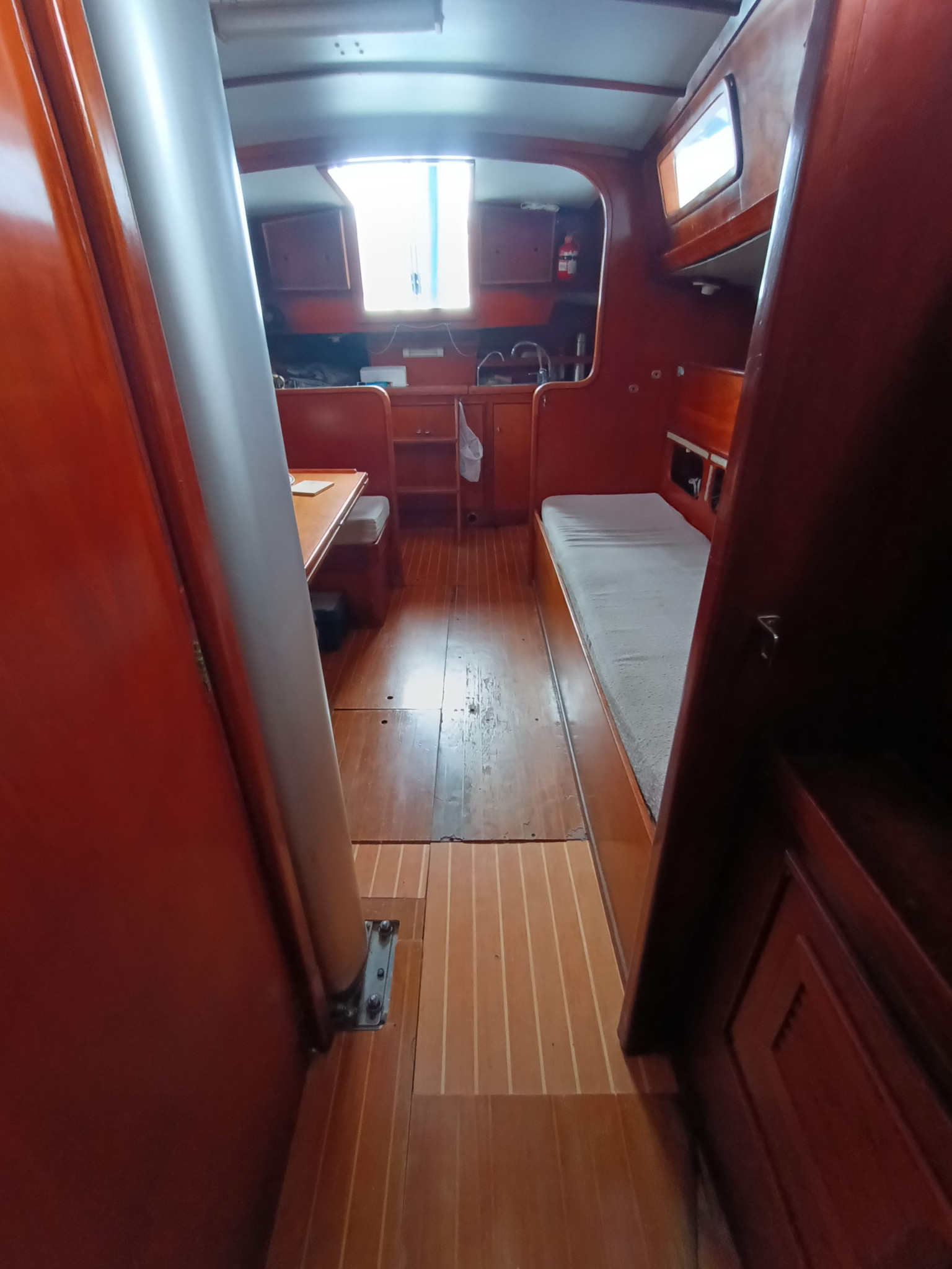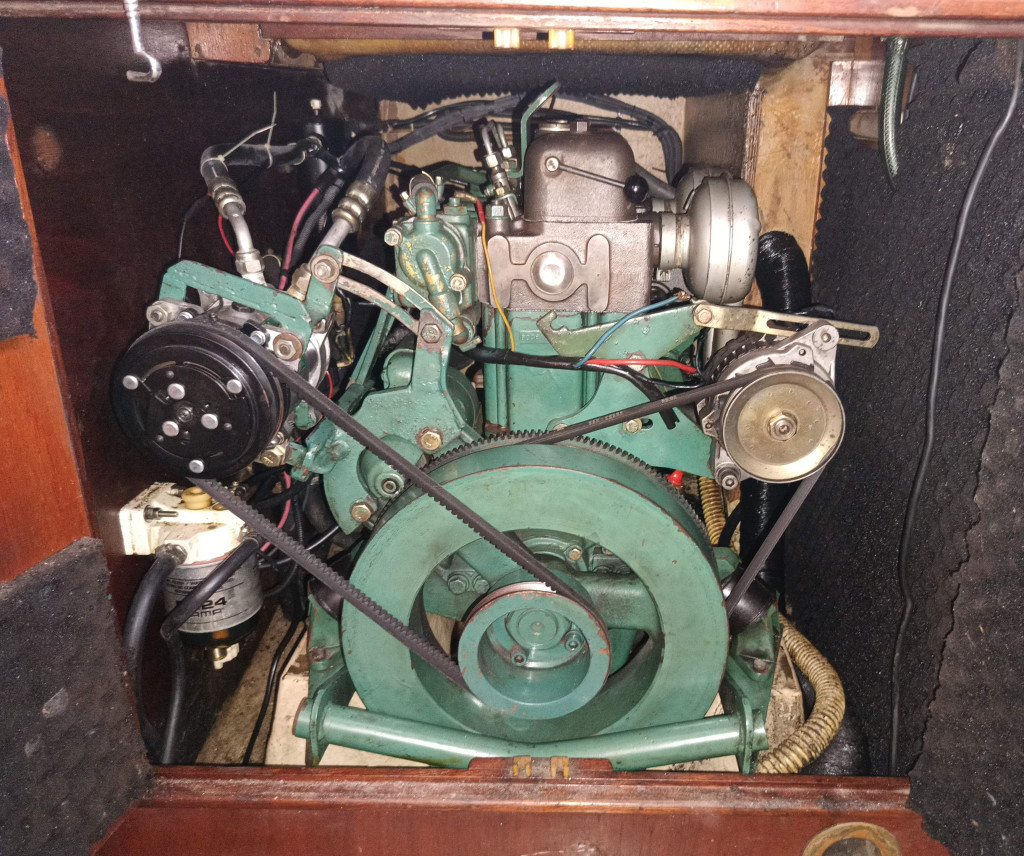 - Motor: Volvo 23 hp diesel con transmisión sail drive (pata) y hélice plegable