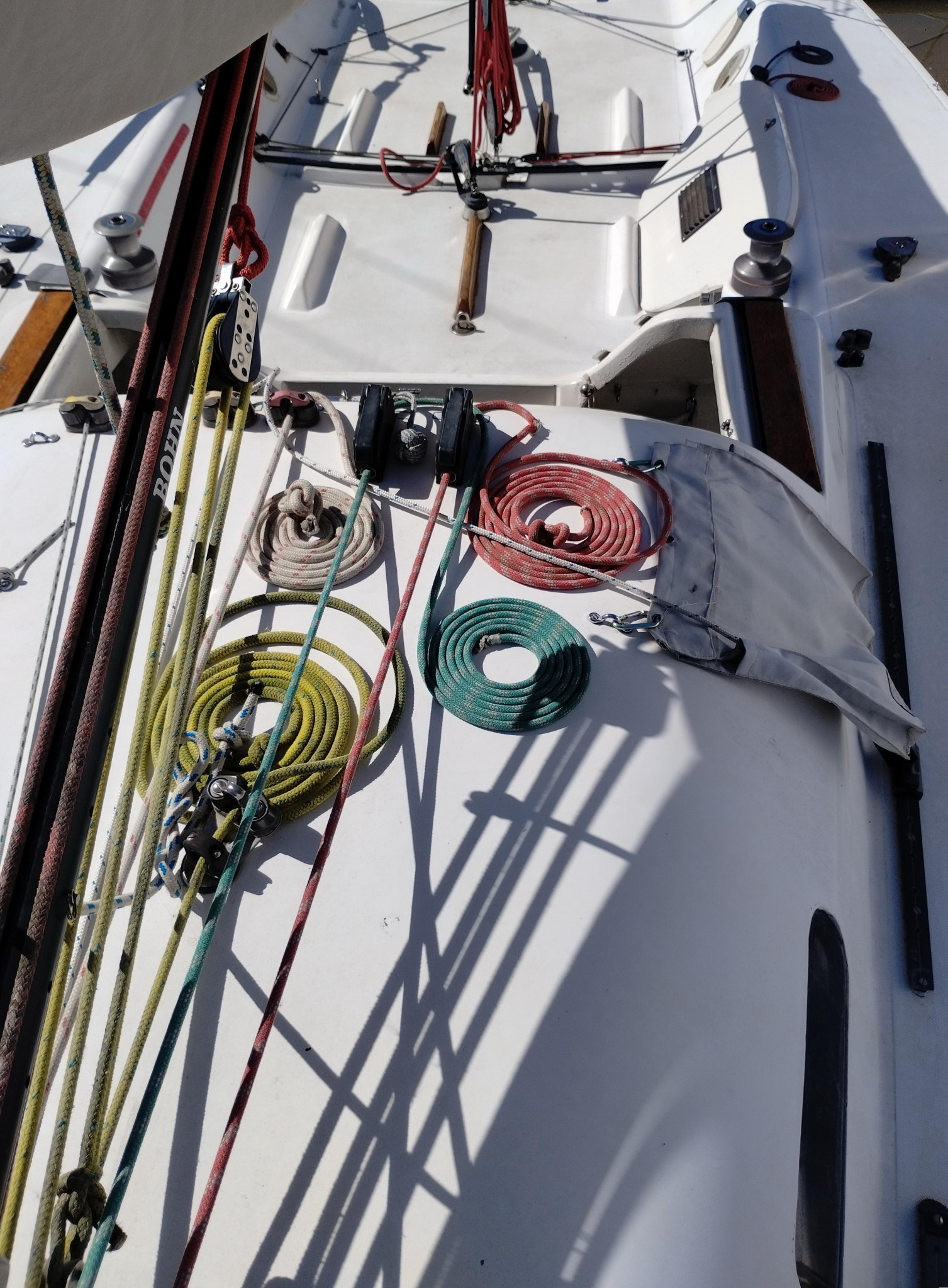- 10 Velas: 3 Mayores (1 dacron, 1 kevlar, 1 capa), genoa 1, 2 genoa 3 (1 dacron, 1 mylar), 3 spi (1 simétrico liviano, 1 simétrico pesado, 1 asimétrico) y tormentín